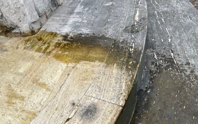 PRIMA DEL NOSTRO INTERVENTO DI PULIZIA E LEVIGATURA CAPELLA IN MARMO TRAVERTINO