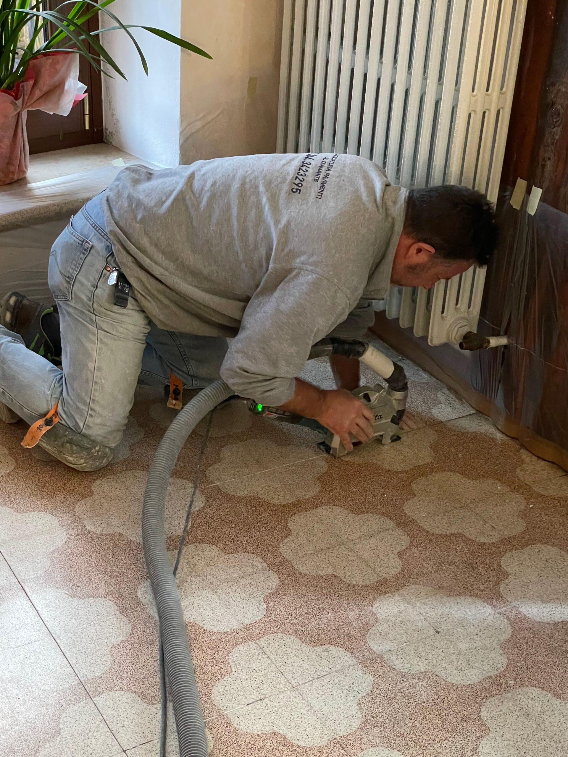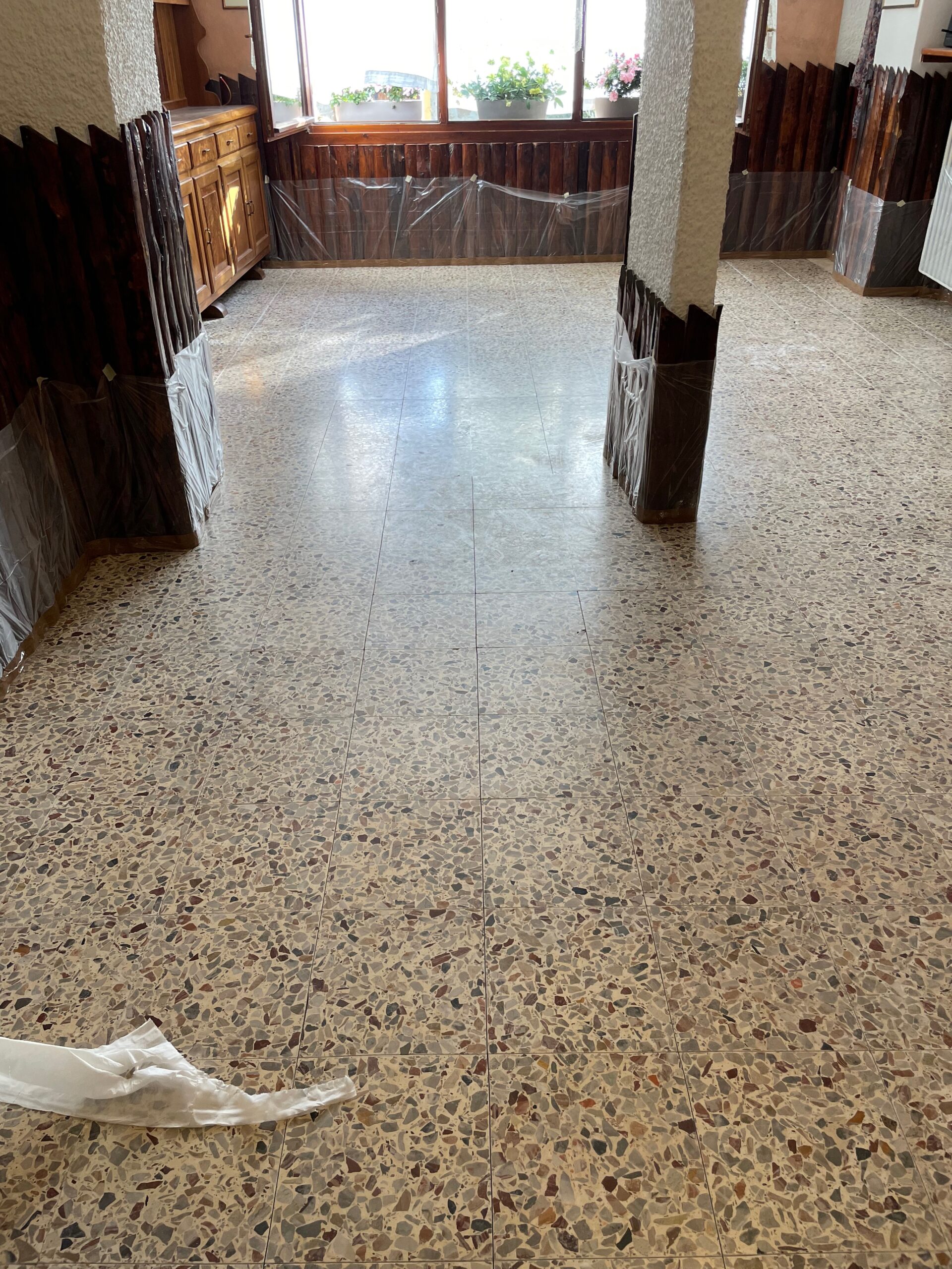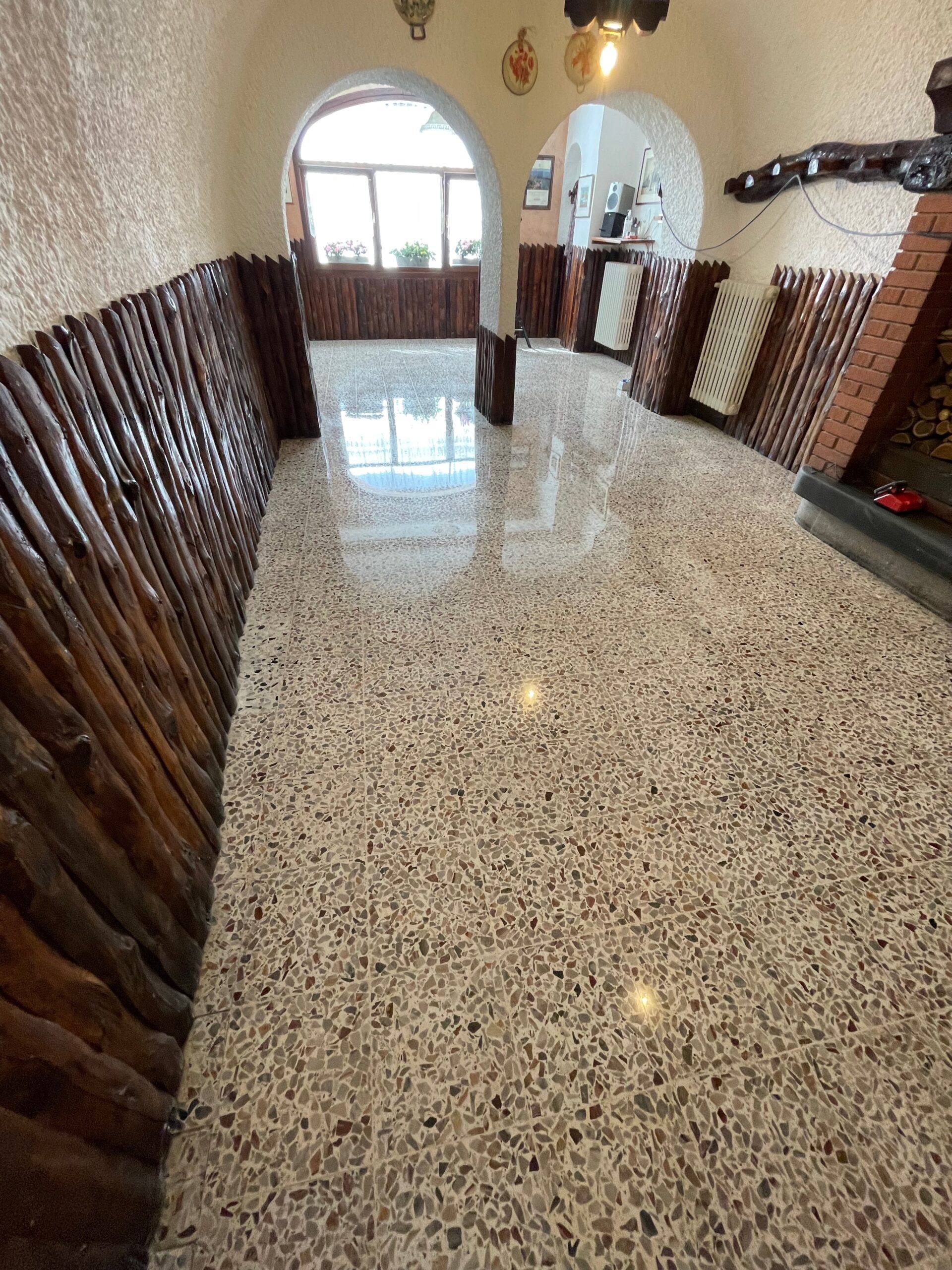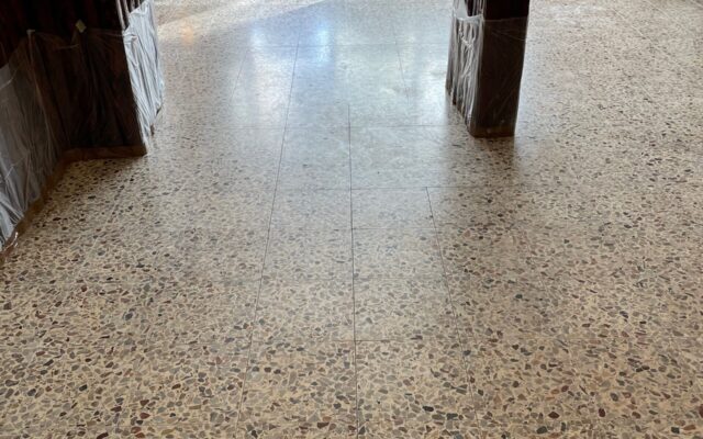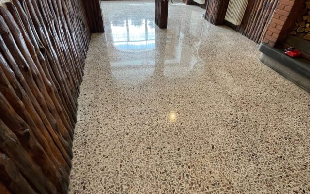 PAVIMENTO IN GRANIGLIA CON RIPRISTINO DELLE FUGHE -LEVIGATO -LUCIDATO E TRATTATO CON LA CRISTALLIZZAZIONE